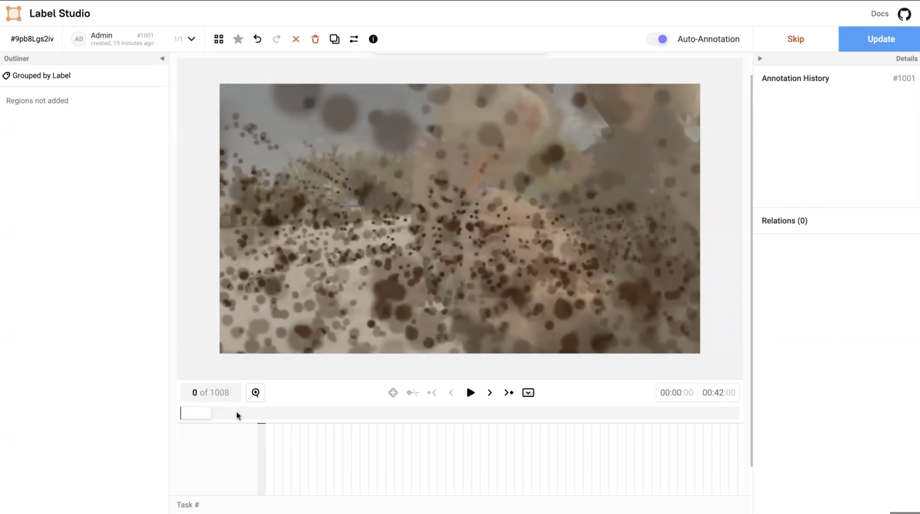 In the Label Studio UI, the video interface presents the main video canvas with controls that allows annotators to more precisely label blurry images using the following operations: